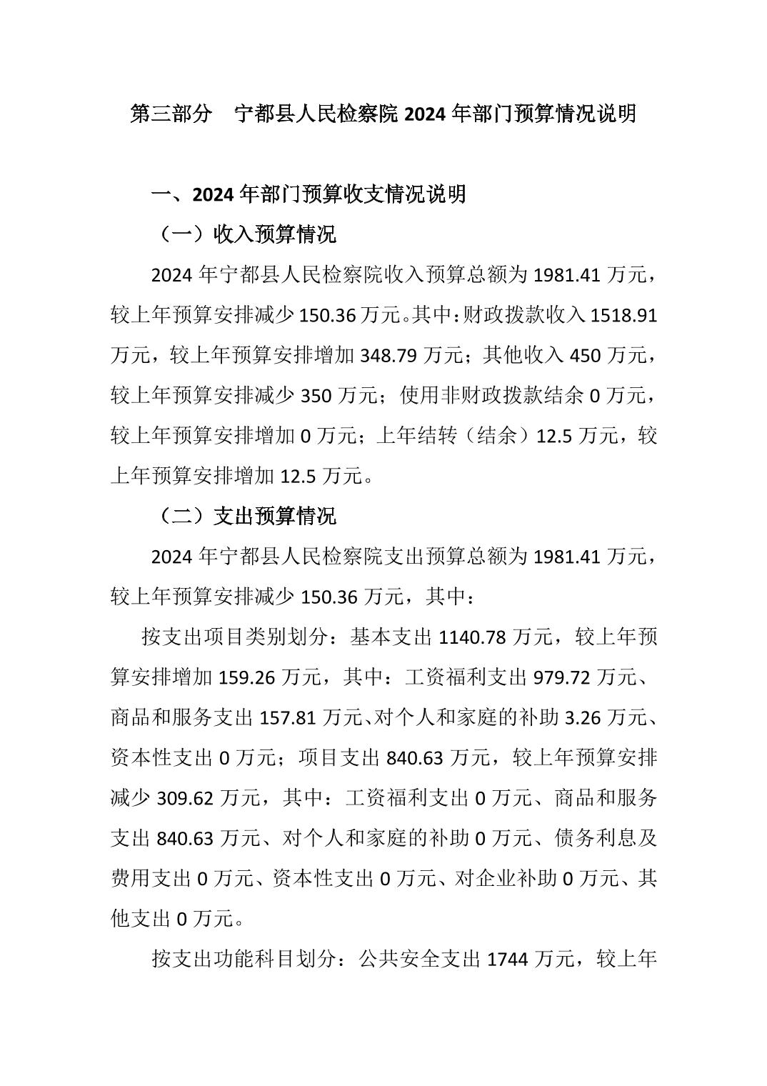 宁都县人民检察院2024年部门预算公开